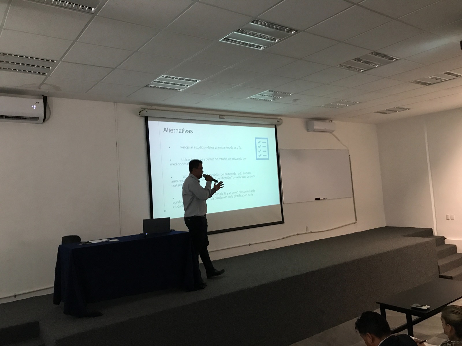 El M.I. José Rafael Martínez Ponce presentó la ponencia "Iniciativa para la zonificación sísmica de la Ciudad de Puebla mediante el método de Vibración Ambiental". La plática abordó la problemática de la zonificación sísmica en la ciudad y afirmó la posibilidad de realizarla utilizando la técnica de vibración ambiental.